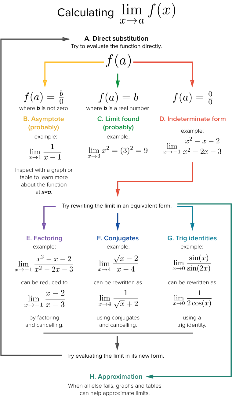 - 除法法则:\(\lim\limits_{x \to c} [\frac{f(x)}{g(x)}] = \frac{\lim\limits_{x \to c} [f(x)]}{\lim\limits_{x \to c} [g(x)]} = \frac{L}{K}, \;\;i.e.\; K \neq 0\)