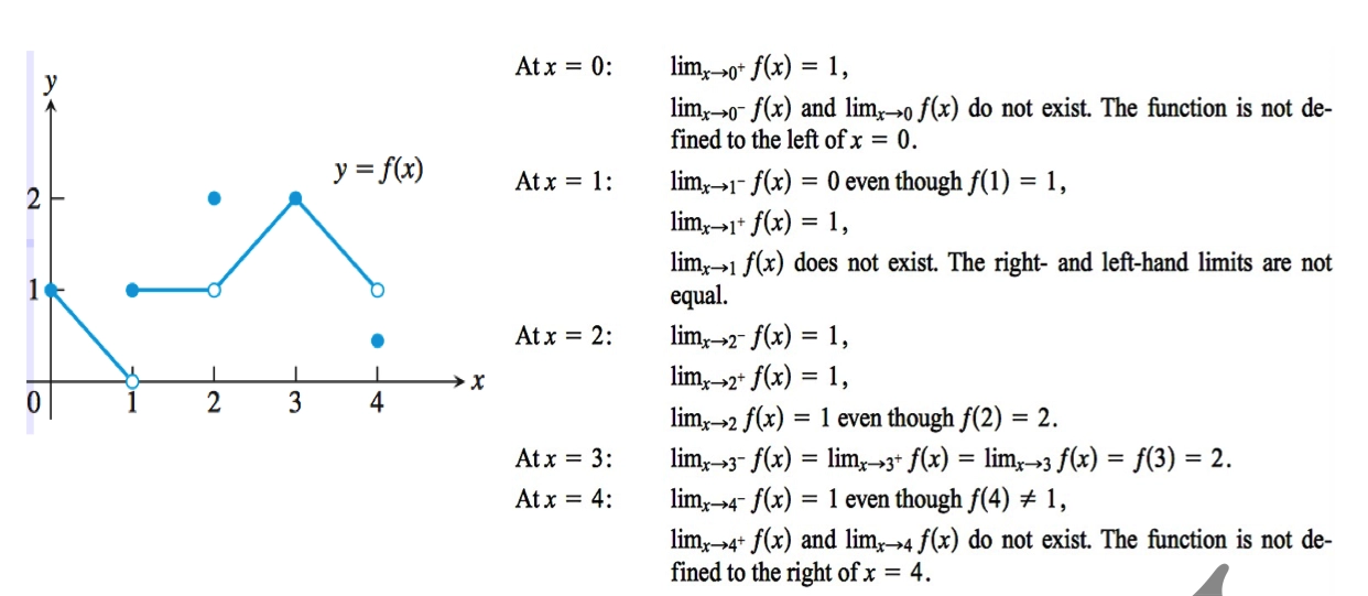 如果左右极限相等,极限存在,反之不存在:\(\lim\limits_{x \to 1^-} f(x) = \lim\limits_{x \to 1^+} f(x) = c\)
