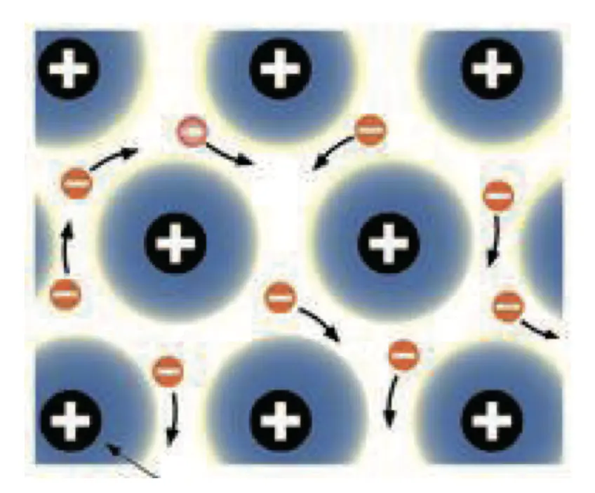 金属有很多的自由电子,我们称之为 Mobile Electrons or Delocalized Electron (Sea of Electrons)