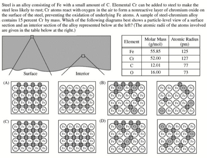 A,C,再根据题意,右图应为金属内部图,而题意指出铬是为了防止金属氧化,所以内部不应有 \(\ce{O}\),故选B