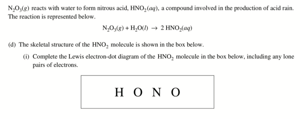 - Practice: \(\ce{H-O-N\bond{2}O}\)