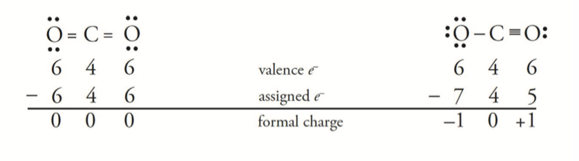 形式电荷为 \(0\) 的时候是该物质最有可能的结构,如下图,更有可能的结构是 左边,而不是右边