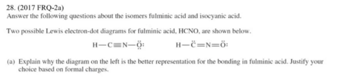 - 左边的结构 Formal Charge 依次为 \(\pu{0 0 +1 -1}\),右边为 \(\pu{0 -1 +1 0}\),而负 Formal Charge 一般在电负性高的元素上,所以我们认为,左边的结构更有可能(在实际考试中需写出 Formal Charge 计算过程)