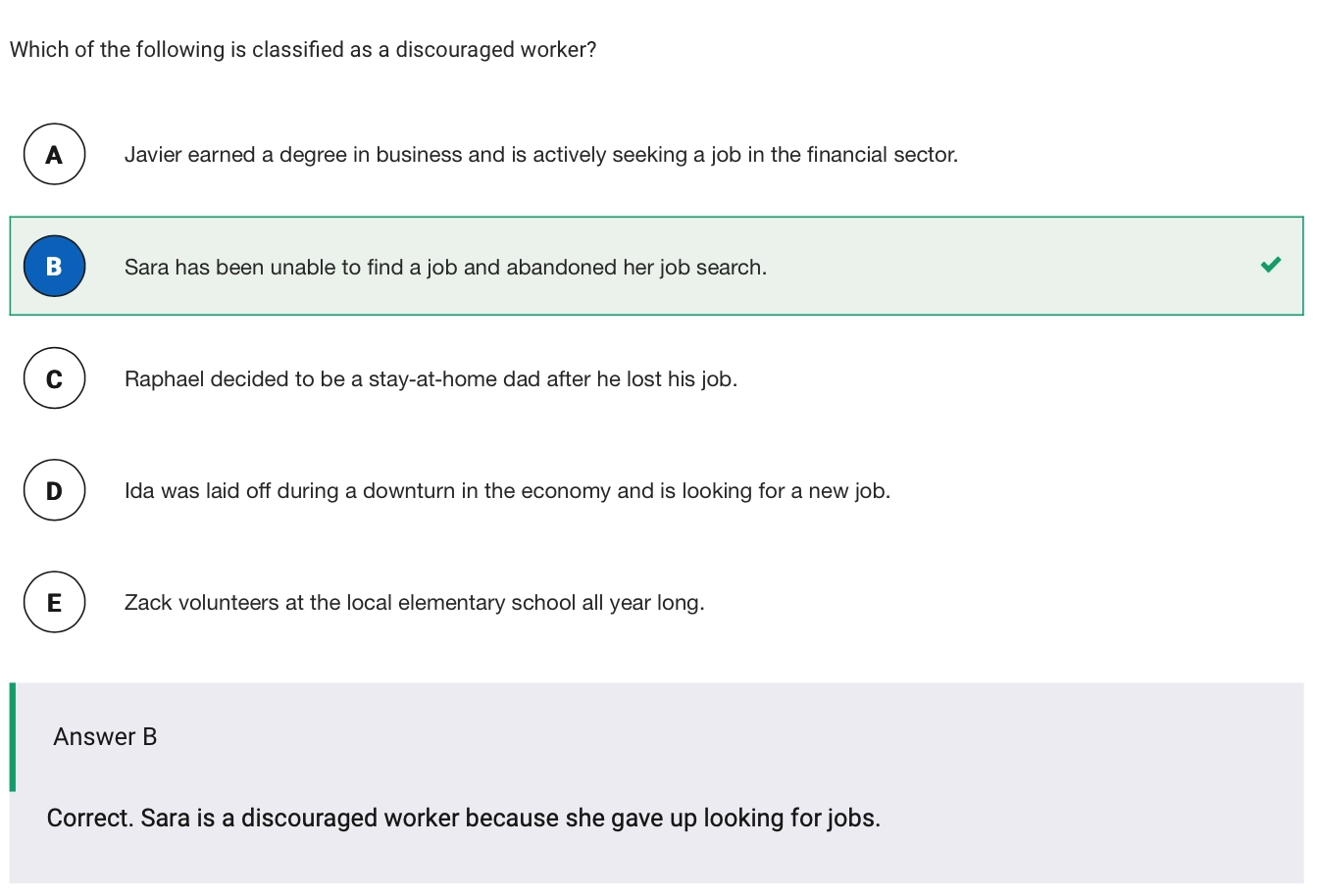 - Labor force excludes the people who do not actively seek a job (Discourage worker).