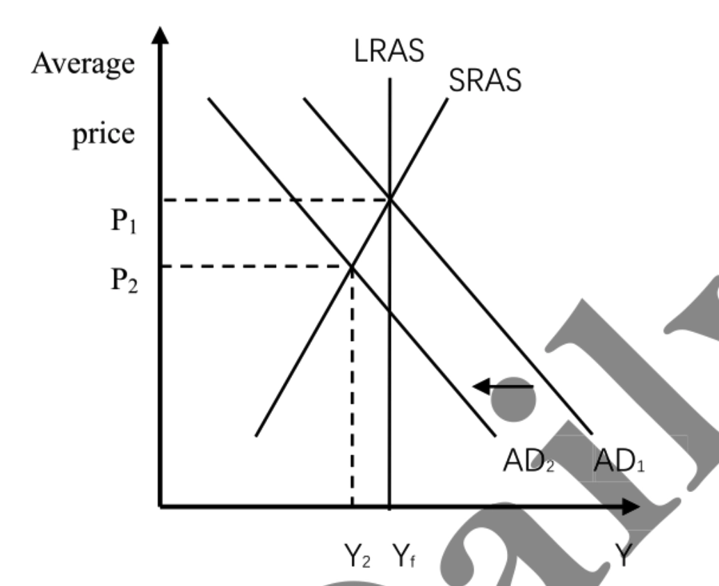 - Price level increase → Fixed amount money purchasing power decrease → Expenditure decrease → Real GDP decrease