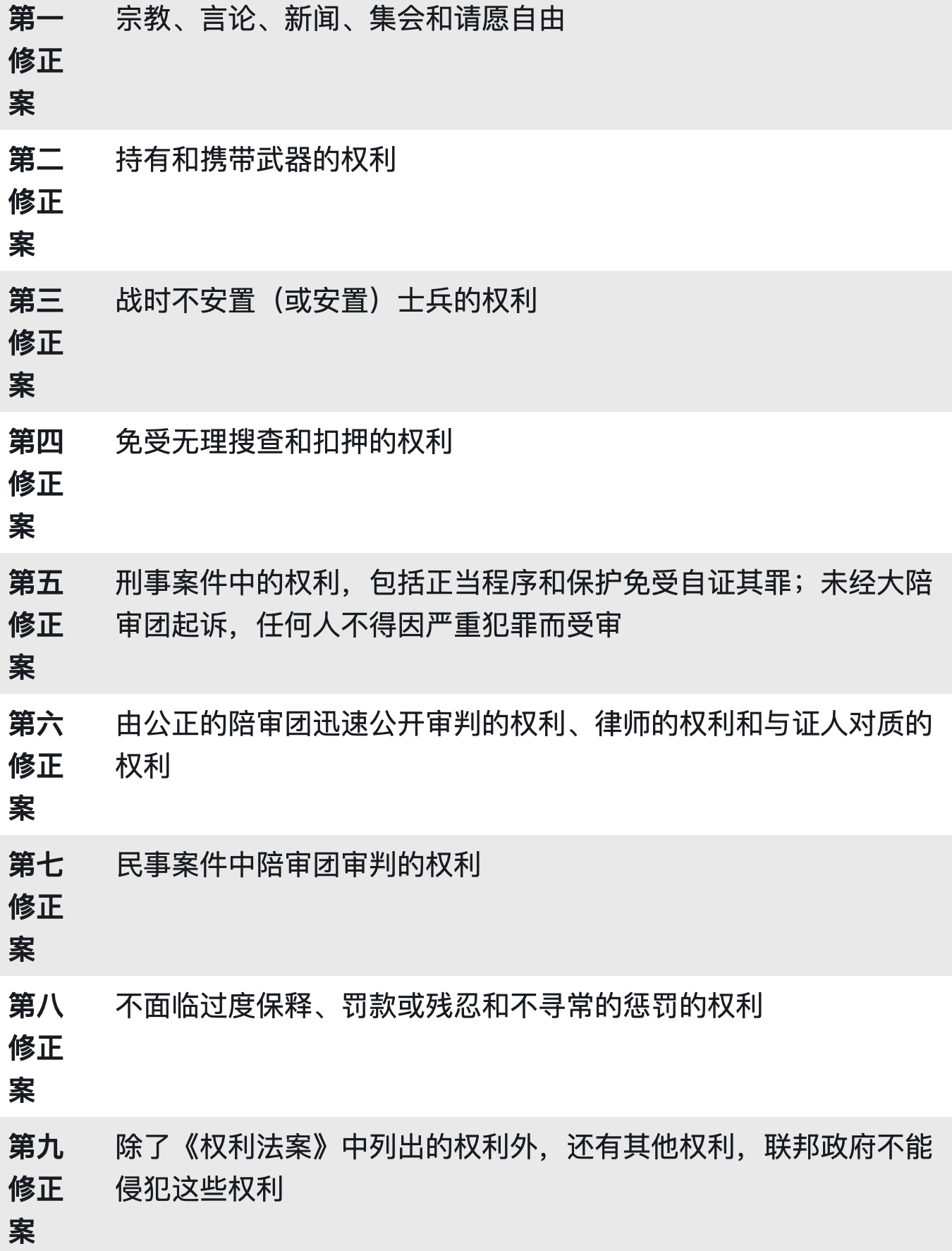 - 美国宪法前十条修正案的统称,缓解反联邦党人的担忧