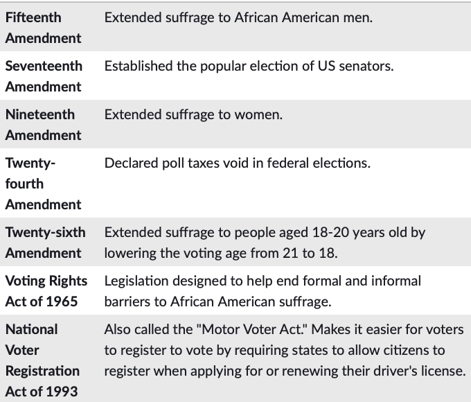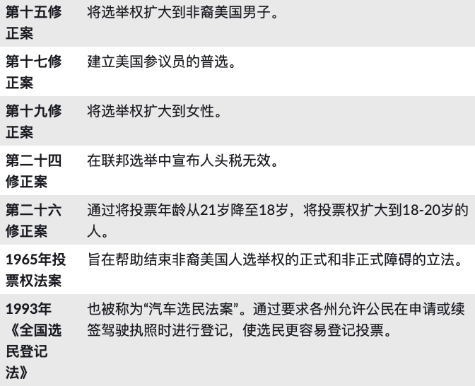 - 禁止联邦或州政府根据公民的种族、肤色或以前曾是奴隶而限制其选举权