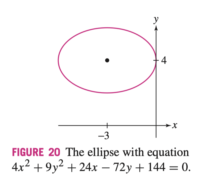 比如对于 \(4x^{2} + 9y^{2} + 24x - 72y + 144 = 0\) 就可以化为 \(4(x + 3)^{2} + 9(y - 4)^{2} = 36\),进而化为椭圆标准方程