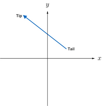 向量(Vector)的几何意义就是从尾(Tail)指到头(Tip)的一个箭头,代数意义为从原点出发指向坐标 \(\left<a, b \right>\) 的箭头。