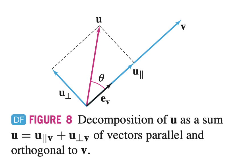 \[ \mathbf{u} = \mathbf{u}_{\parallel \mathbf{v}} + \mathbf{u}_{\perp \mathbf{v}} \]