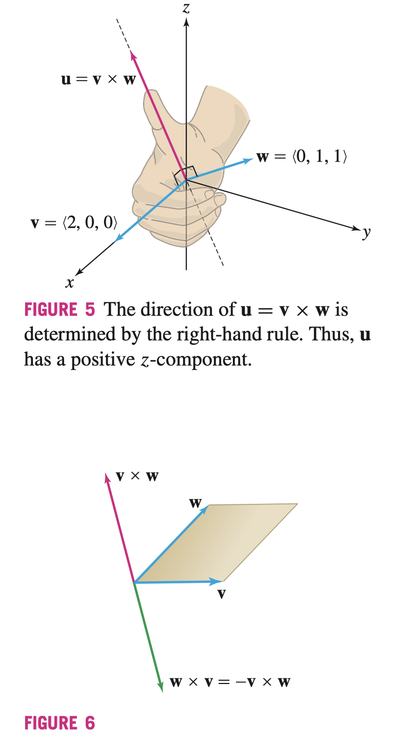 - \({\mathbf{v}, \mathbf{w}, \mathbf{v} \times \mathbf{w}}\) 符合右手定则