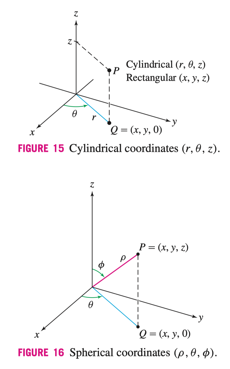 12.7 Cylindrical and Spherical Coordinates 柱面坐标系与球面坐标系