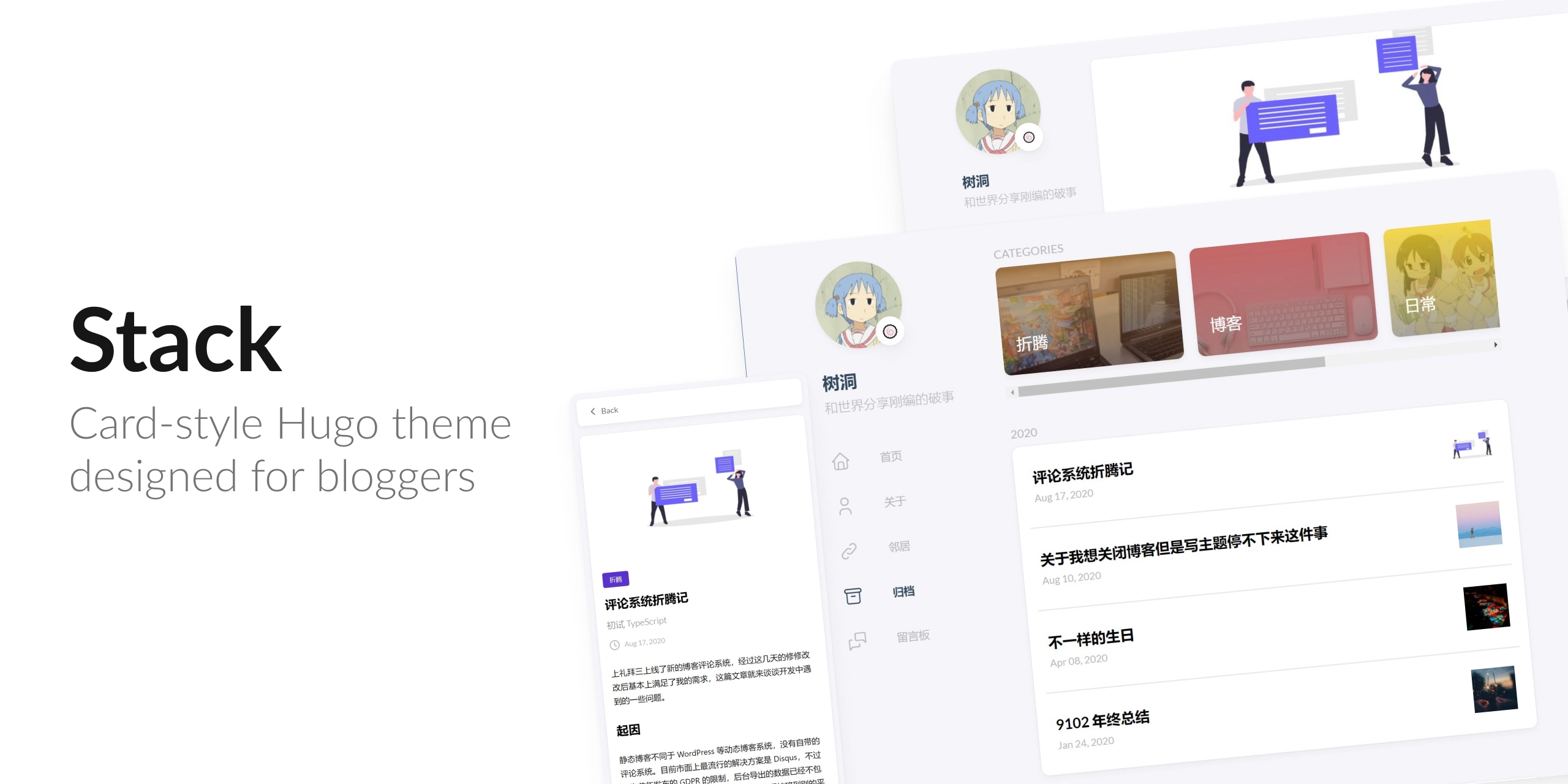 - 更加简洁易用,Stack 主题使用 Sass,无 JQuery 的轻量开发